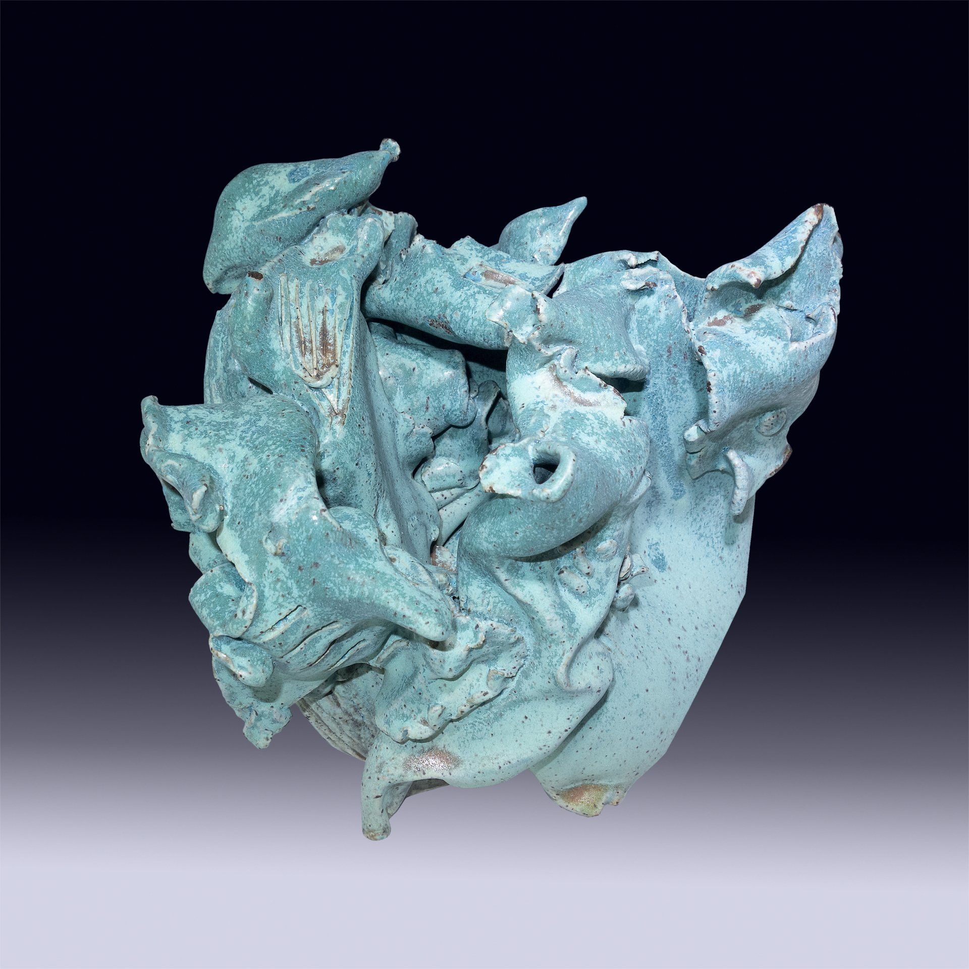 Glazing my sculpture is an entire new process for me and as much as it is magical it is nerve wracking. Once the glaze is applied in its powder form and put in the kiln, I have no control on how it will come out.